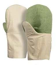 Для защиты рук при выполнении механических работ используют плотные хлопчатобумажные рукавицы. Материал обладает высокой износоустойчивостью и значительной крепостью на разрыв. Это позволяет исключить истирание рук, порезы и проколы. Для усиления защитных свойств рукавиц предусмотрены наладонники высокой прочности. Плотность ткани составляет 220 г на 1 м2. Натуральный материал, из которого пошита модель, обеспечивает естественную вентиляцию и эффективное впитывание пота. Ткань не липнет к рукам и не скользит. В качестве виброзащитного слоя используется  поролон.